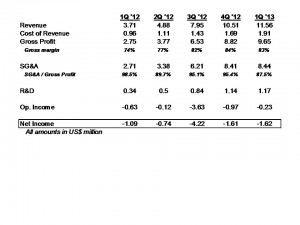 On the balance sheet side, the company runs a very “asset light” business model with only $3 million in Property, Plant and Equipment. The current cash balance is only $5 million relative to a $2 million quarterly cash burn. Both of these factors mean that there is virtually no cushion of safety relative to its $660 million market cap.