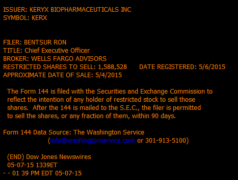 This article is the opinion of the author. Nothing herein comprises a recommendation to buy or sell any security. The author is short KERX. The author may choose to transact in securities of one or more companies mentioned within this article within the next 72 hours. The author has relied upon publicly available information gathered from sources, which are believed to be reliable and has included links to various sources of information within this article. However, while the author believes these sources to be reliable, the author provides no guarantee either expressly or implied.