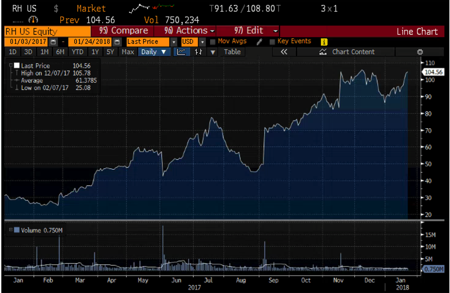 When I published my long thesis on Restoration Hardware in November, the stock was hitting multi year highs at around $89. It had more than tripled since the beginning of the year. Many investors viewed it as a short simply due to the share price spike. It is now substantially higher.